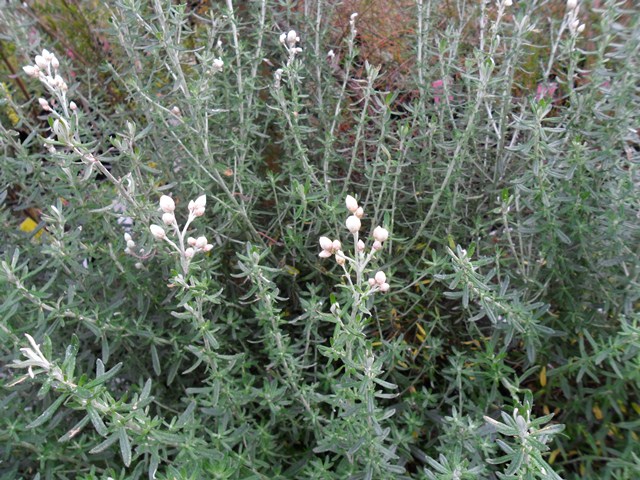 Argentipallium spiceri is a fast growing, grey-green foliaged shrub growing to about 0.5 m in dry to average conditions. It has open clusters of small, white or pinkish flowerheads that only open on sunny days. It looks good in massed plantings along with other daisies.