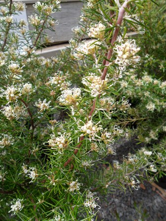 Upright Large-flowered Form – This form originally came from the Huon River, though similar plants occur on the Swan River near Bicheno. It has longer, narrow, but not stiff leaves, and also grows to about 2 m. As its name suggests it has larger flowers than the other forms.
